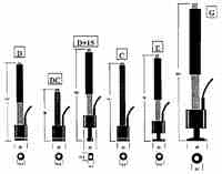 沖擊裝置適用范圍 | D型測量通用件;DC型測量內孔或狹小空間內部表面;DL型測量細小窄槽底 | D+15型測量溝槽或凹入的表面 | C型測量小的或輕薄的試件及表面硬化層 | G型測量大的或厚重的試件及表面較粗糙的鑄件 | |
