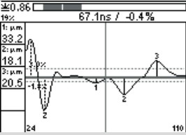 QSoft軟件可以顯示測量時A型掃描圖像,這樣可得到更加準確的數據。參數設置用于定義測量范圍,抗干擾, 回波診斷和預估截止帶范圍。通過設置的截止帶可以將雜波排除掉,例如由基材GRP或CRP纖維造成的雜波。