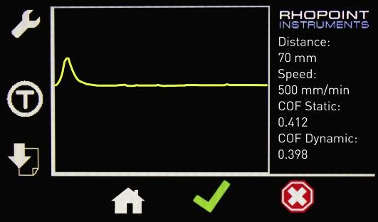 測試后立即在屏幕上顯示靜態和動態摩擦系數結果