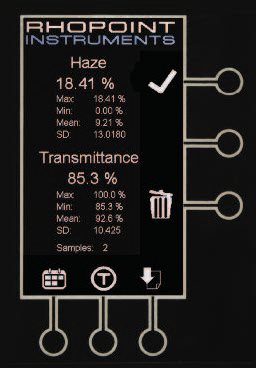 測(cè)試結(jié)束時(shí),在屏幕上顯示霧度和透射率的百分比。