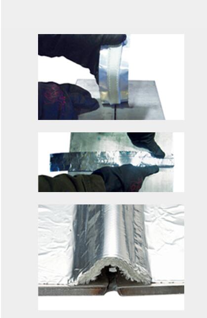 Fiback 的運作方式 對齊 將所需的基礎金屬與所需的根間隙對齊。把玻璃纖維條正好放在根隙的背面 位置 將玻璃纖維條呈凸形,遠離焊縫背面,以限制噴槍的凈化氣體,但避免消耗材料 壓 將膠帶的粘合部分沿根部間隙兩側壓在基材上,繼續將玻璃纖維條置中。記得在焊接過程中把釋放襯里從鋁帶上剝離。該工藝確保鋁膠帶上的粘合劑無雜質和異物。 焊接 開始焊接所需的接縫。 |
