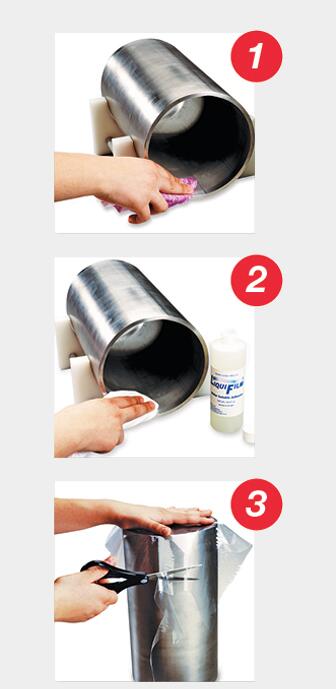將Liquifilm水溶性粘合劑涂抹到管道內(nèi)側(cè)。涂抹管道表面需貼膜的整個圓周。